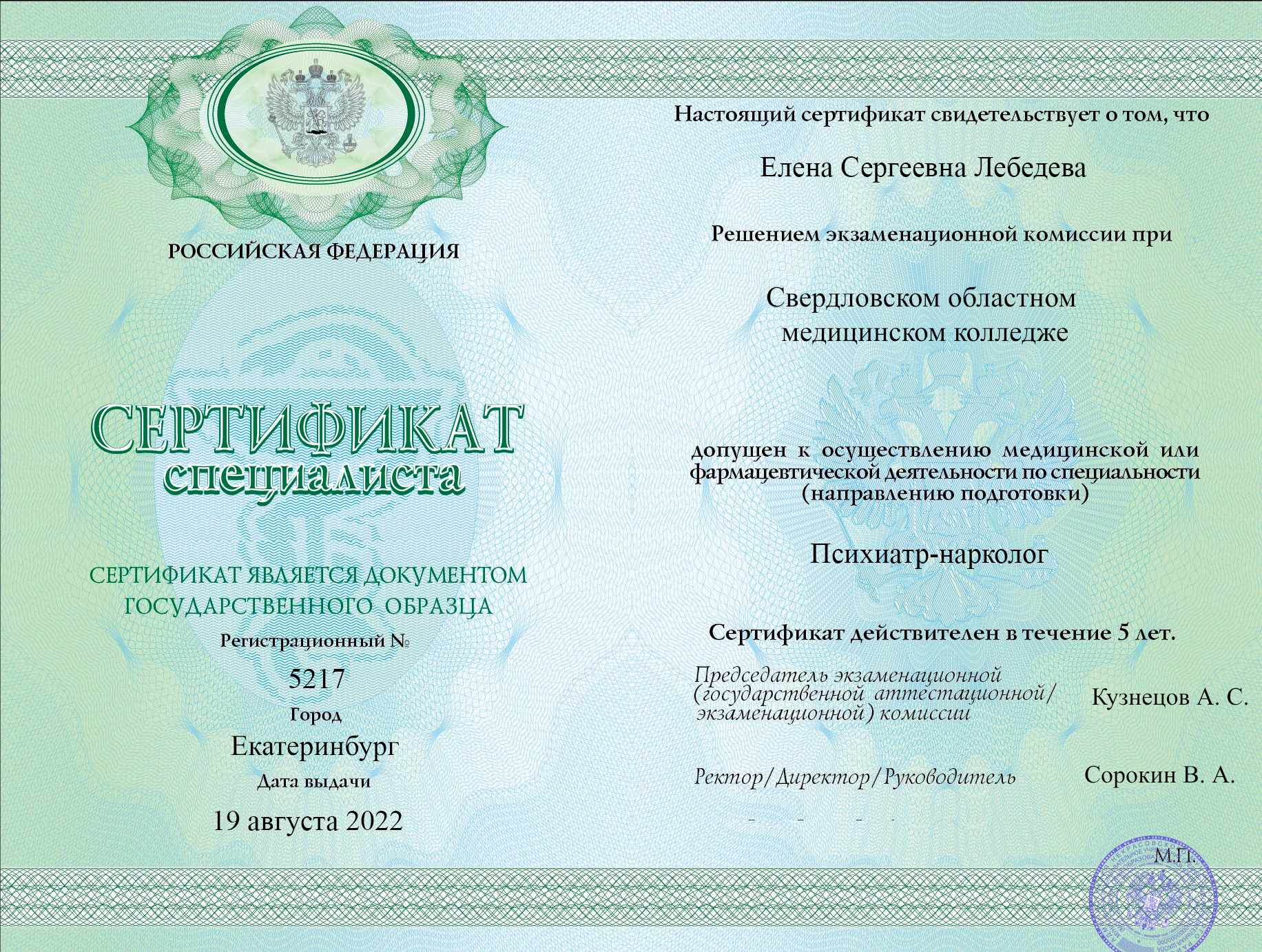 Елена Сергеевна Лебедева врач нарколог клиники доктора Стукаловой в Черепаново